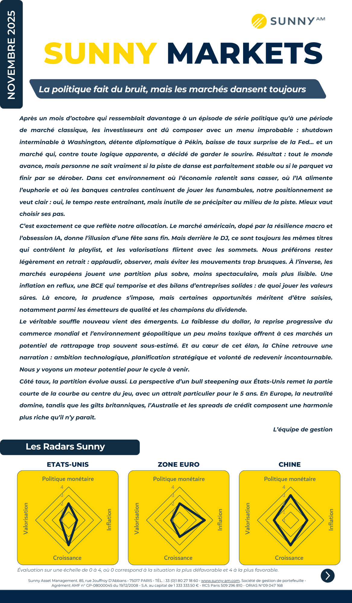 Édito du mois de Novembre : La politique fait du bruit, mais les marchés dansent toujours